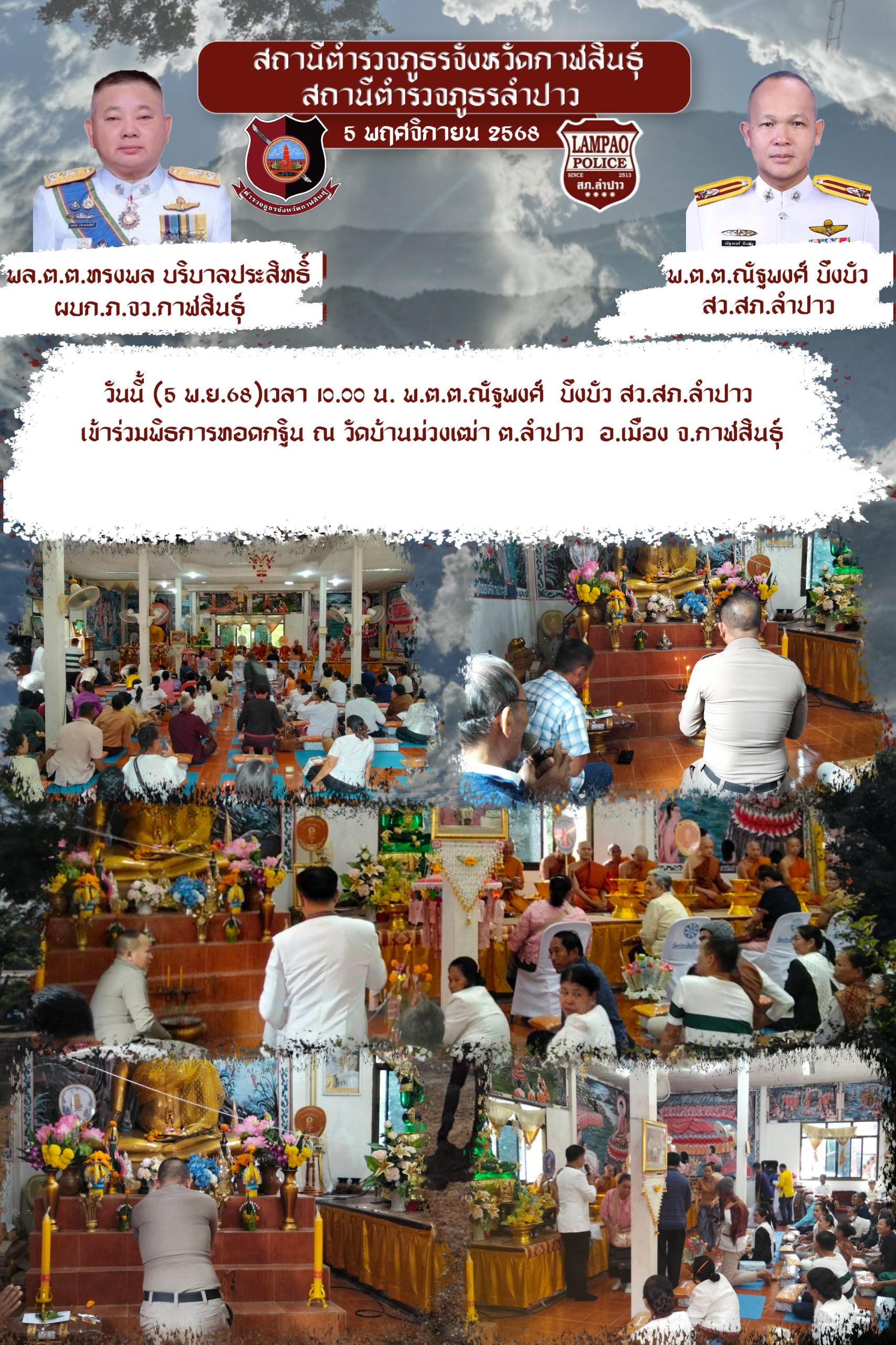 วันนี้ (5 พ.ย. 2568 เวลา 10.00 น.) พ.ต.ต.ณัฐพงศ์ บึงบัว สว.สภ.ลำปาว เข้าร่วมพิธีการทอดกฐิน ณ วัดบ้าน