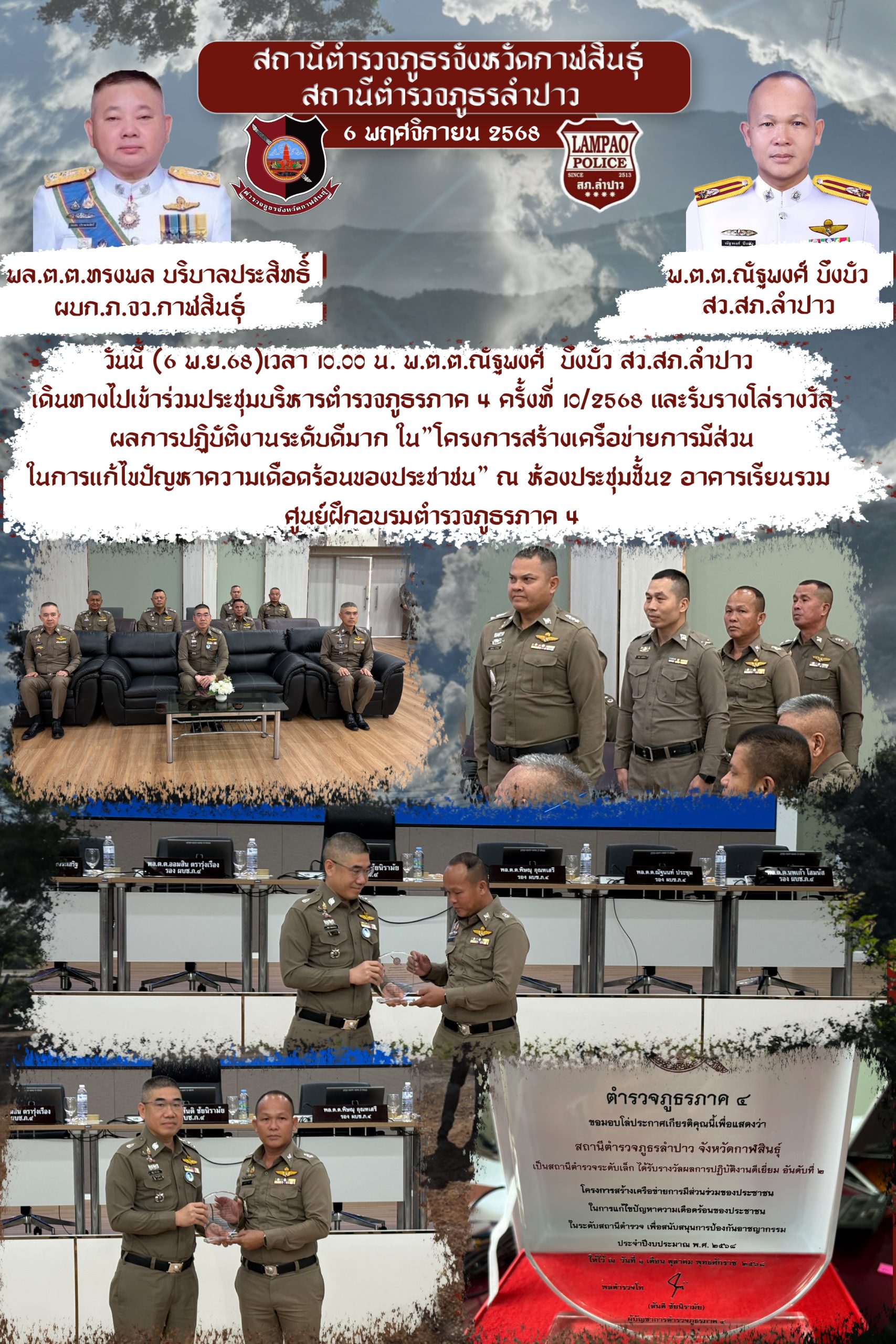 วันนี้ (6 พ.ย.68)เวลา 10.00 น. พ.ต.ต.ณัฐพงศ์ บึงบัว สว.สภ.ลำปาว เดินทางไปเข้าร่วมประชุมบริหารตำรวจภู
