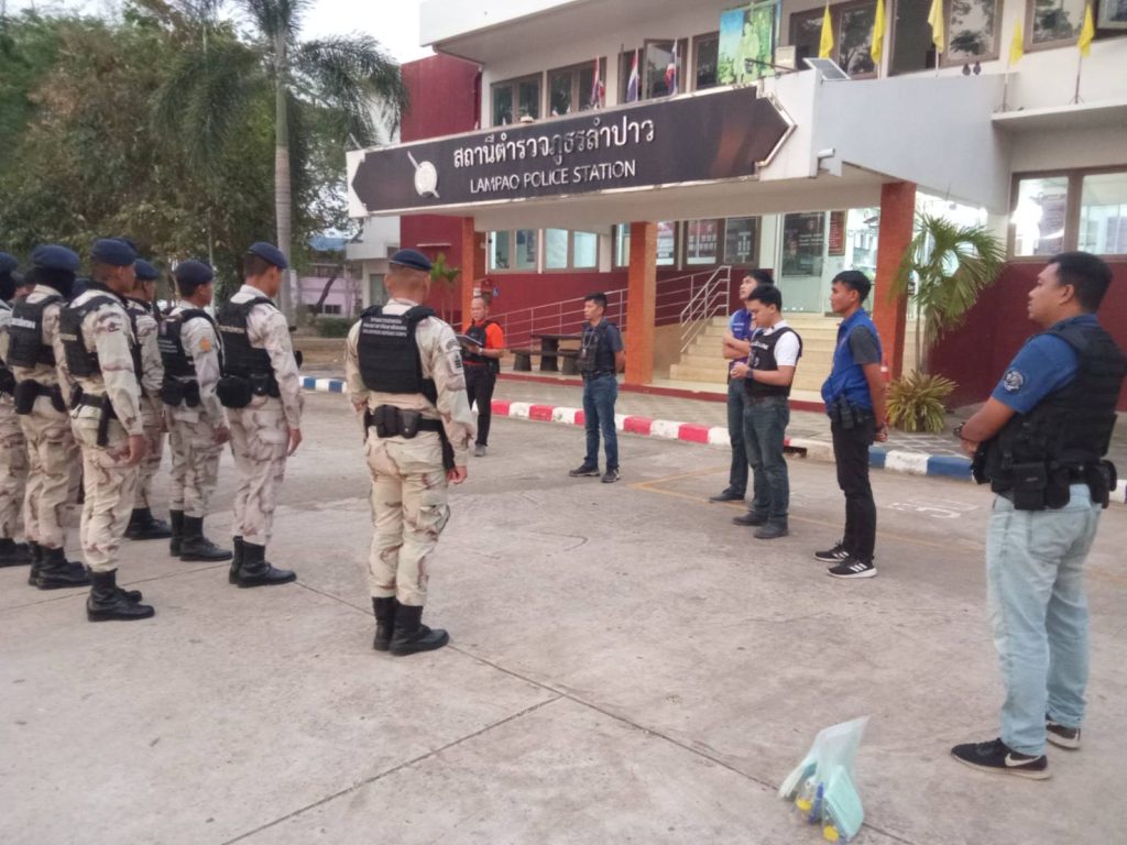 สนธิกำลังปิดล้อมตรวจค้น 4 เมษายน 2568 โดย admlumpao / ข่าวภารกิจผู้บังคับบัญชา วันนี้ 4 เม.ย.2568 เวลา 06.20น สภ.ลำปาว นำโดย พ.ต.ต.ณัฐพงศ์ บึงบัว สว.สภ.ลำปาว เจ้าหน้าที่ตำรวจ กก.สส.กาฬสินธุ์ , ตม.กาฬสินธุ์ และเจ้าหน้าที่ฝ่ายปกครอง สนธิกำลังตรวจค้นเป้าหมายที่ได้รับเรื่องร้องเรียนภาคประชาชนในพื้นที่ ต.ภูดิน และต.ลำคลองฯ สามารถจับกุมผู้กระทำความผิดได้ 7 ราย ซึ่งผู้ต้องหา 1 ใน 7 ราย มียาบ้า จำนวน 200 เม็ด ซึ่งจะนำไปสู่การสอบสวนขยายผลต่อไป FacebookFacebookXXLINELine