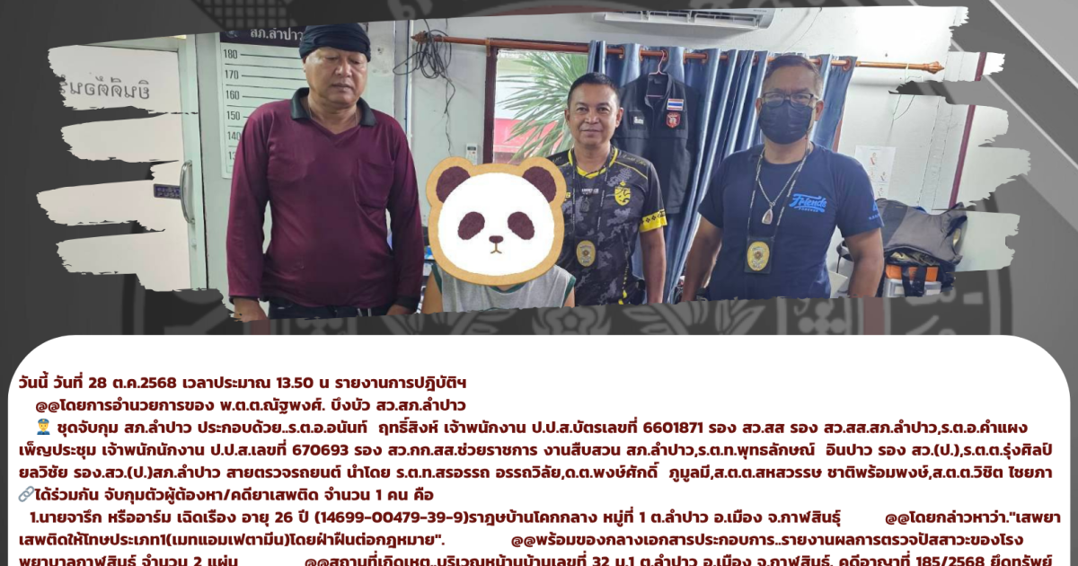 วันนี้ วันที่ 28 ต.ค.2568 เวลาประมาณ 13.50 น รายงานการปฎิบัติฯ