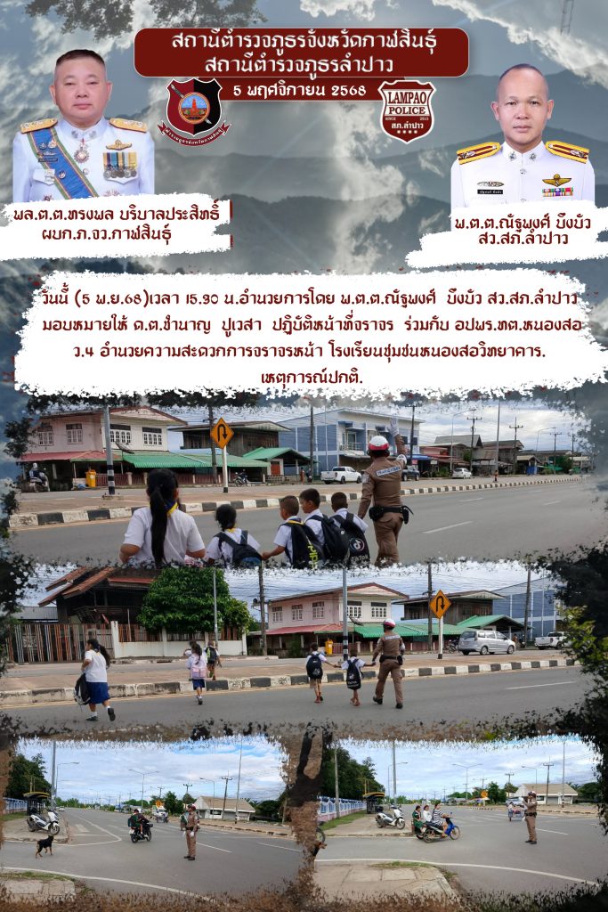 วันนี้ (5 พ.ย.68)เวลา 15.30 น.อำนวยการโดย พ.ต.ต.ณัฐพงศ์ บึงบัว สว.สภ.ลำปาว มอบหมายให้ ด.ต.ชำนาญ ปูเวสา ปฏิบัติหน้าที่จราจร ร่วมกับ อปพร.ทต.หนองสอ ว.4 อำนวยความสะดวกการจราจรหน้า โรงเรียนชุมชนหนองสอวิทยาคาร. เหตุการณ์ปกติ.