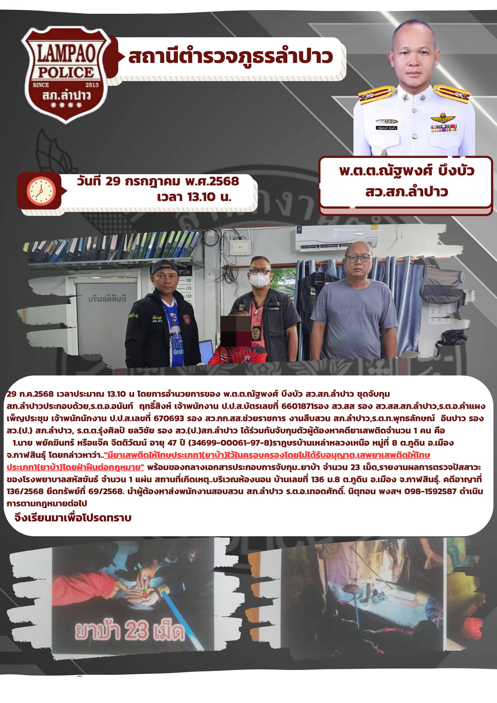 29 ก.ค.2568 เวลาประมาณ 13.10 น โดยการอำนวยการของ พ.ต.