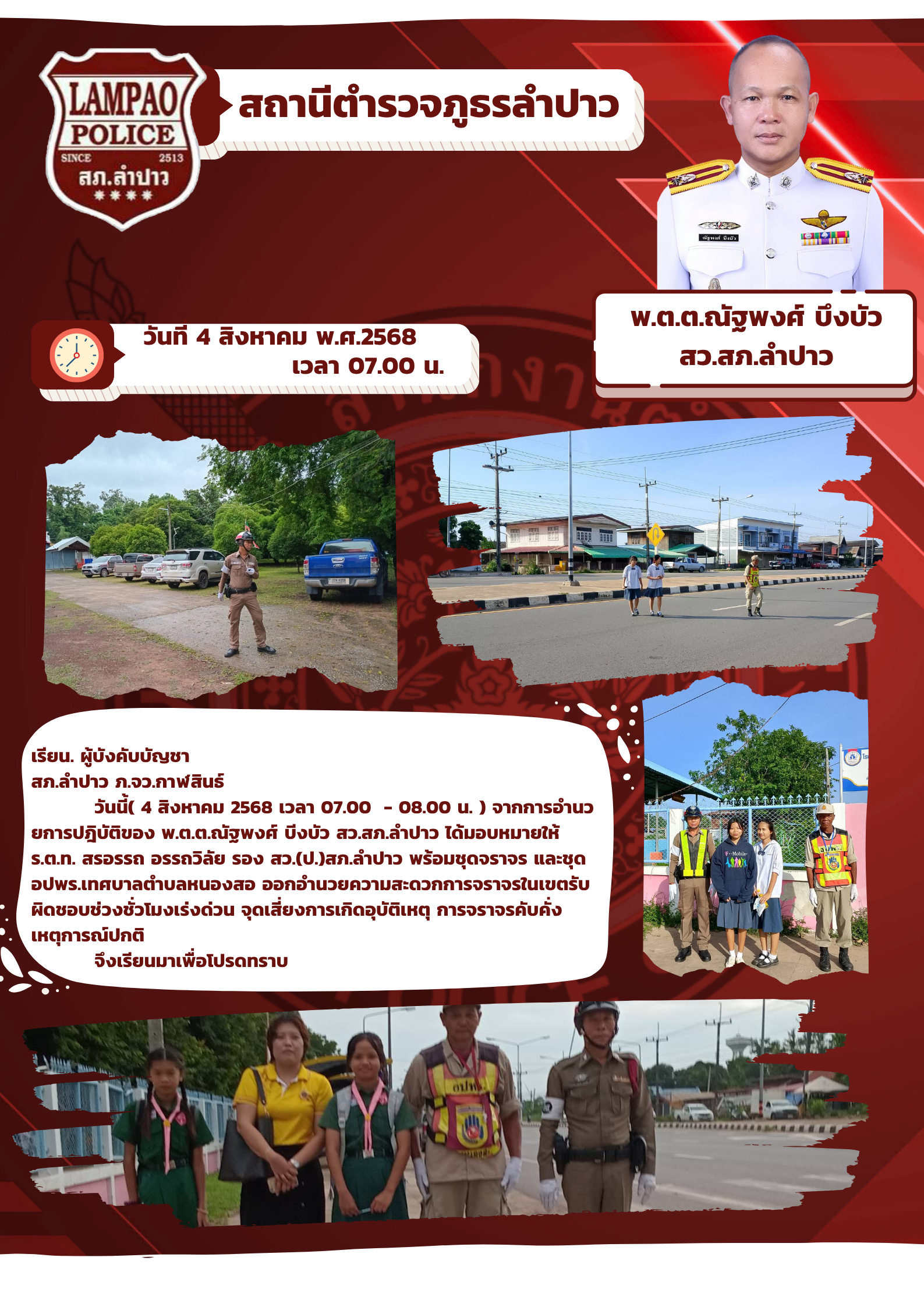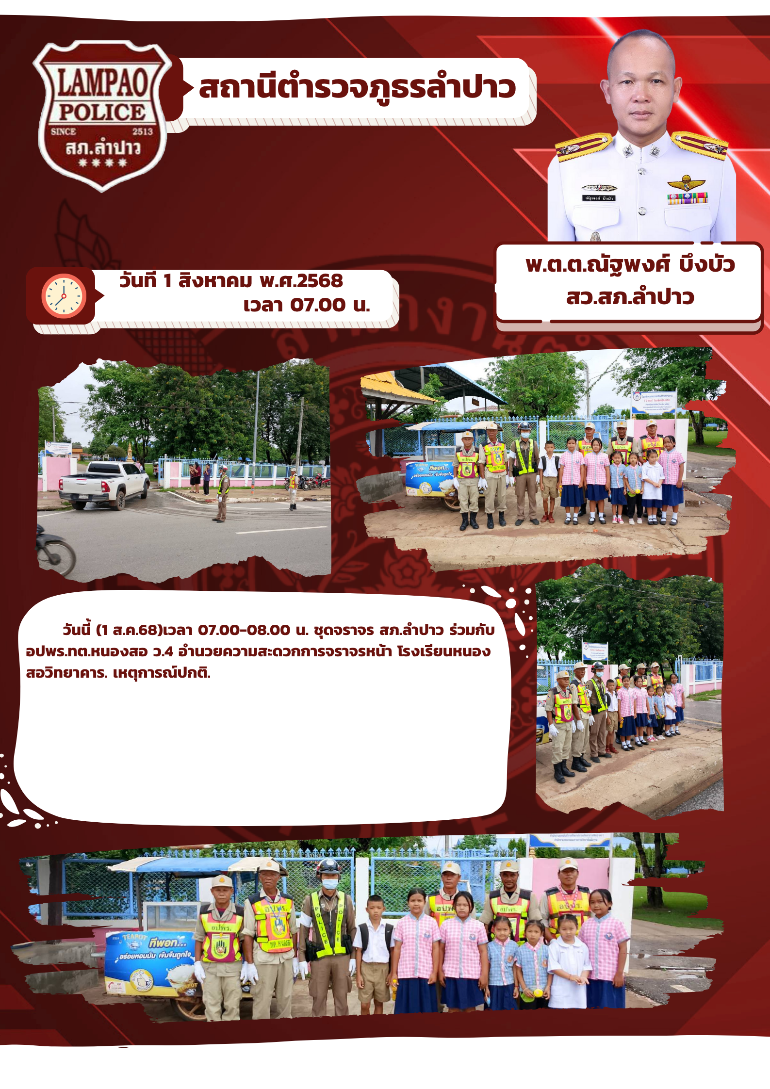 วันนี้ (1 ส.ค.68)เวลา 07.00-08.00 น. ชุดจราจร สภ.ลำป