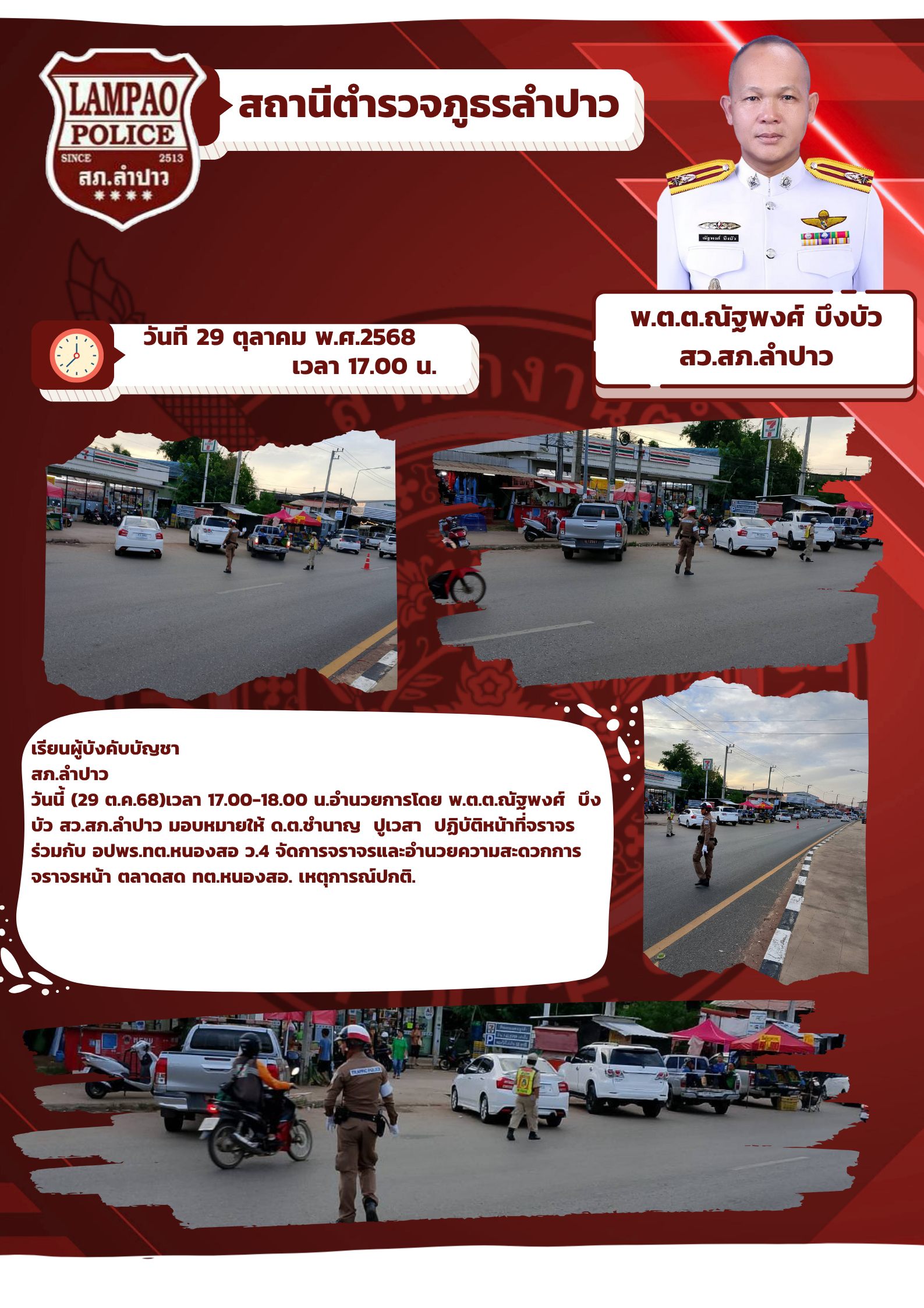 เรียนผู้บังคับบัญชา สภ.ลำปาว วันนี้ (29 ต.ค.68)เวลา 17.00-18.00 น.อำนวยการโดย พ.ต.ต.ณัฐพงศ์ บึงบัว ส
