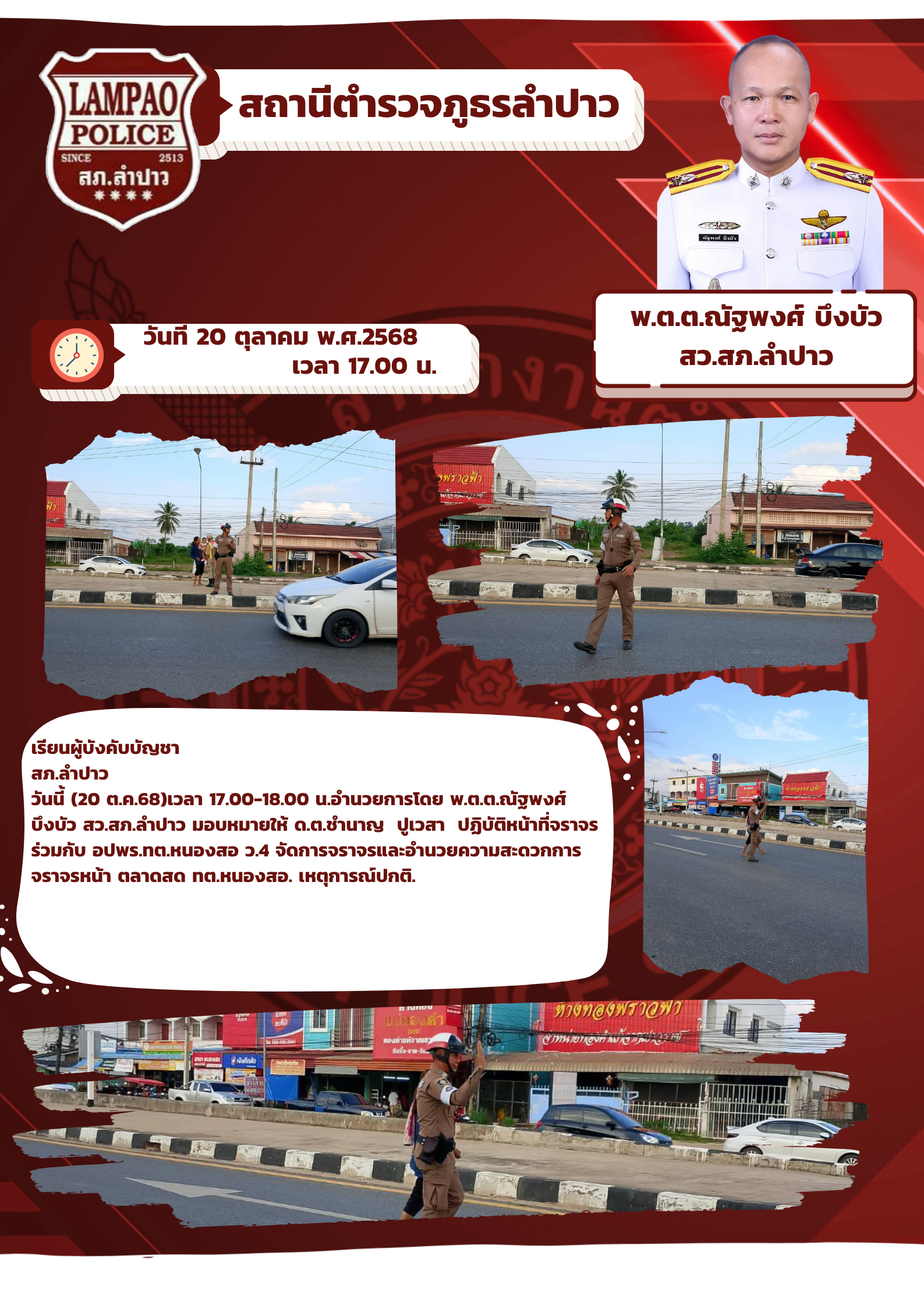 เรียนผู้บังคับบัญชา สภ.ลำปาว วันนี้ (20 ต.ค.68)เวลา 17.00-18.00 น.อำนวยการโดย พ.ต.ต.ณัฐพงศ์ บึงบัว ส