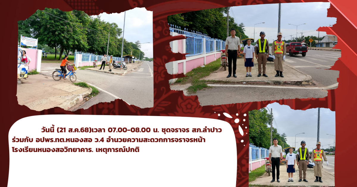 21 สิงหาคม พ.ศ.2568 21 สิงหาคม 2568 โดย admlumpao / งานจราจร วันนี้ (21 ส.ค.68)เวลา 07.00-08.00 น. ชุดจราจร สภ.ลำปาว ร่วมกับ อปพร.ทต.หนองสอ ว.4 อำนวยความสะดวกการจราจรหน้า โรงเรียนหนองสอวิทยาคาร. เหตุการณ์ปกติ https://www.facebook.com/share/p/16a5hYoNB8/ FacebookFacebookXXLINELine