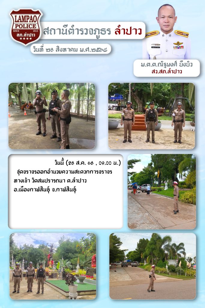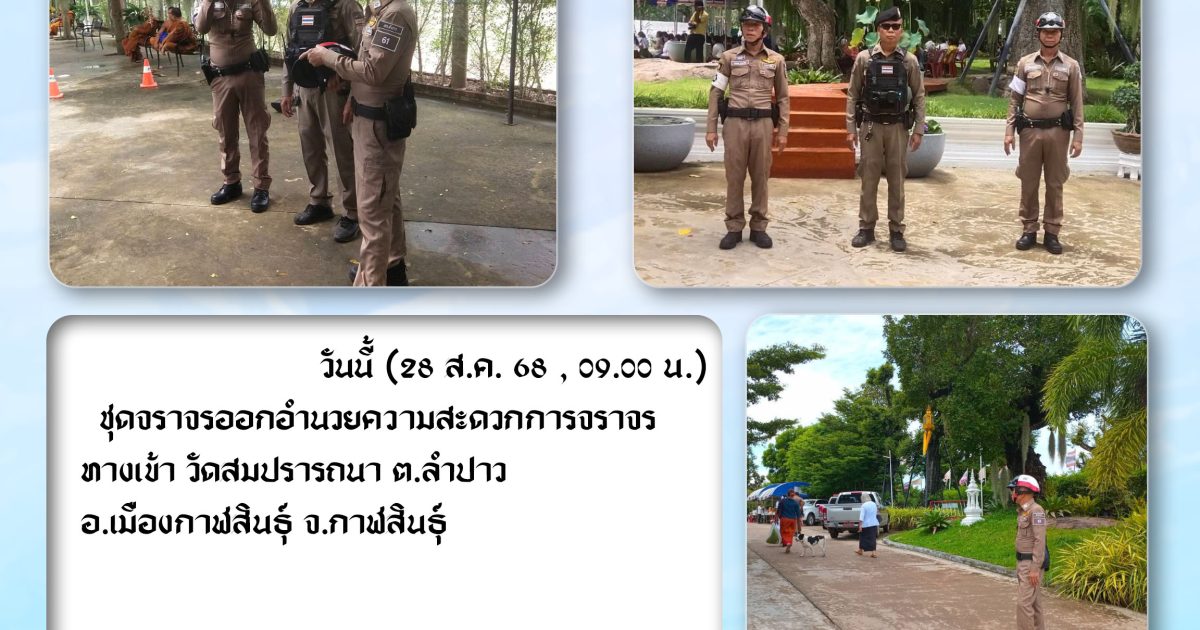 28 สิงหาคม พ.ศ.2568 28 สิงหาคม 2568 โดย admlumpao / งานจราจร,งานป้องกันและปราบปราม วันนี้ (28 ส.ค. 68 , 09.00 น.)ชุดจราจรออกอำนวยความสะดวกการจราจรทางเข้า วัดสมปรารถนา ต.ลำปาว อ.เมืองกาฬสินธุ์ จ.กาฬสินธุ์ https://www.facebook.com/share/p/16rvEyhcQ1/ FacebookFacebookXXLINELine