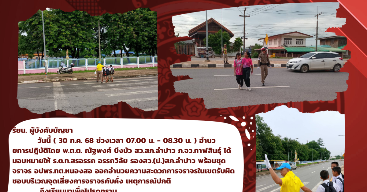30 กรกฎาคม พ.ศ.2568 30 กรกฎาคม 2568 โดย admlumpao / งานจราจร,งานอื่นๆ วันนี้ ( 30 ก.ค. 68 ช่วงเวลา 07.00 น. – 08.30 น. ) อำนวยการปฎิบัติโดย พ.ต.ต. ณัฐพงศ์ บึงบัว สว.สภ.ลำปาว ภ.จว.กาฬสินธุ์ ได้มอบหมายให้ ร.ต.ท.สรอรรถ อรรถวิลัย รองสว.(ป.)สภ.ลำปาว พร้อมชุดจราจร อปพร.ทต.หนองสอ ออกอำนวยความสะดวกการจราจรในเขตรับผิดชอบบริเวณจุดเสี่ยงการจราจรคับคั่ง เหตุการณ์ปกติ จึงเรียนมาเพื่อโปรดทราบ https://www.facebook.com/share/p/1GErgyRehU/ FacebookFacebookXXLINELine