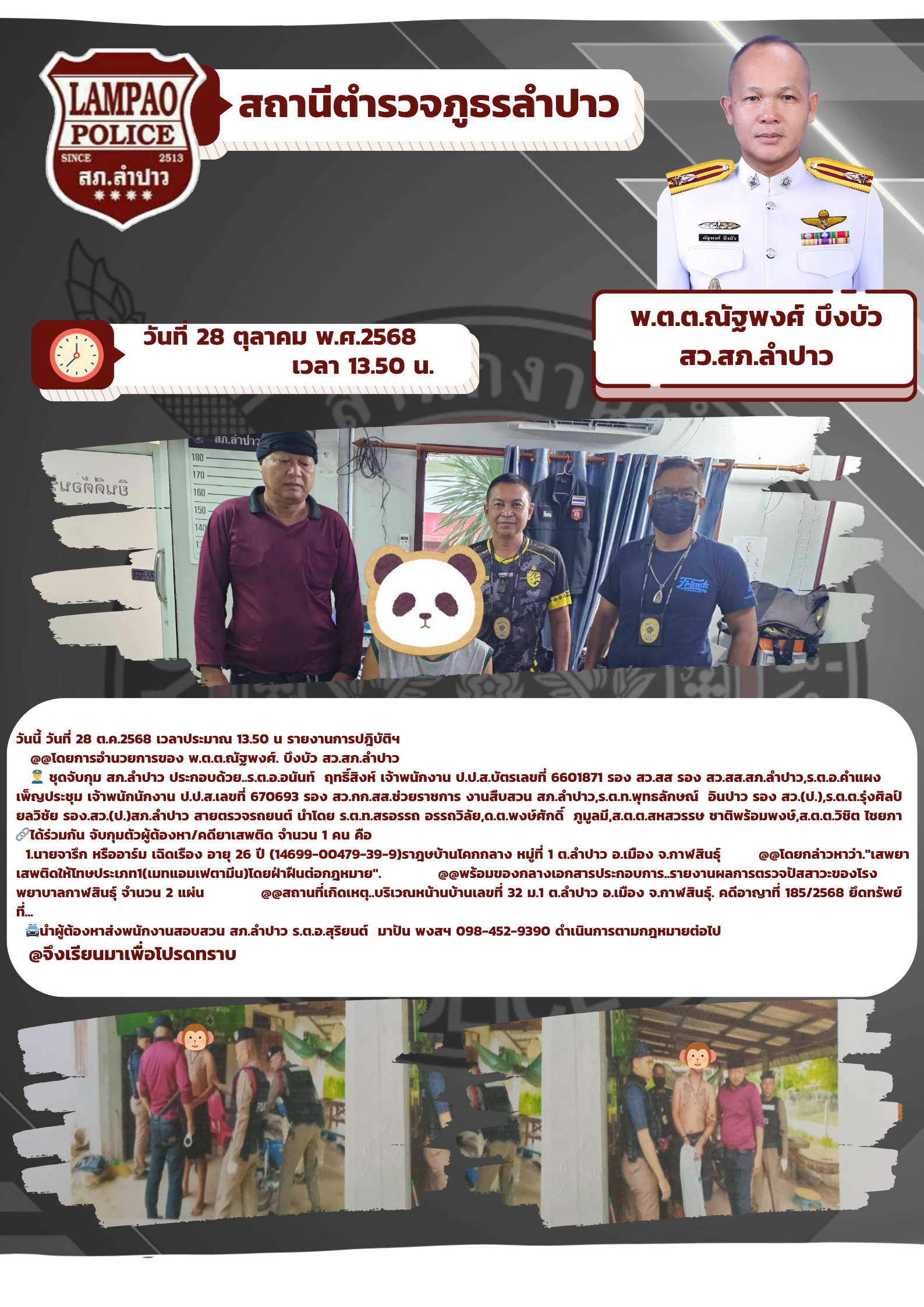 วันนี้ วันที่ 28 ต.ค.2568 เวลาประมาณ 13.50 น รายงานการปฎิบัติฯ @@โดยการอำนวยการของ พ.ต.ต.ณัฐพงศ์. บึ