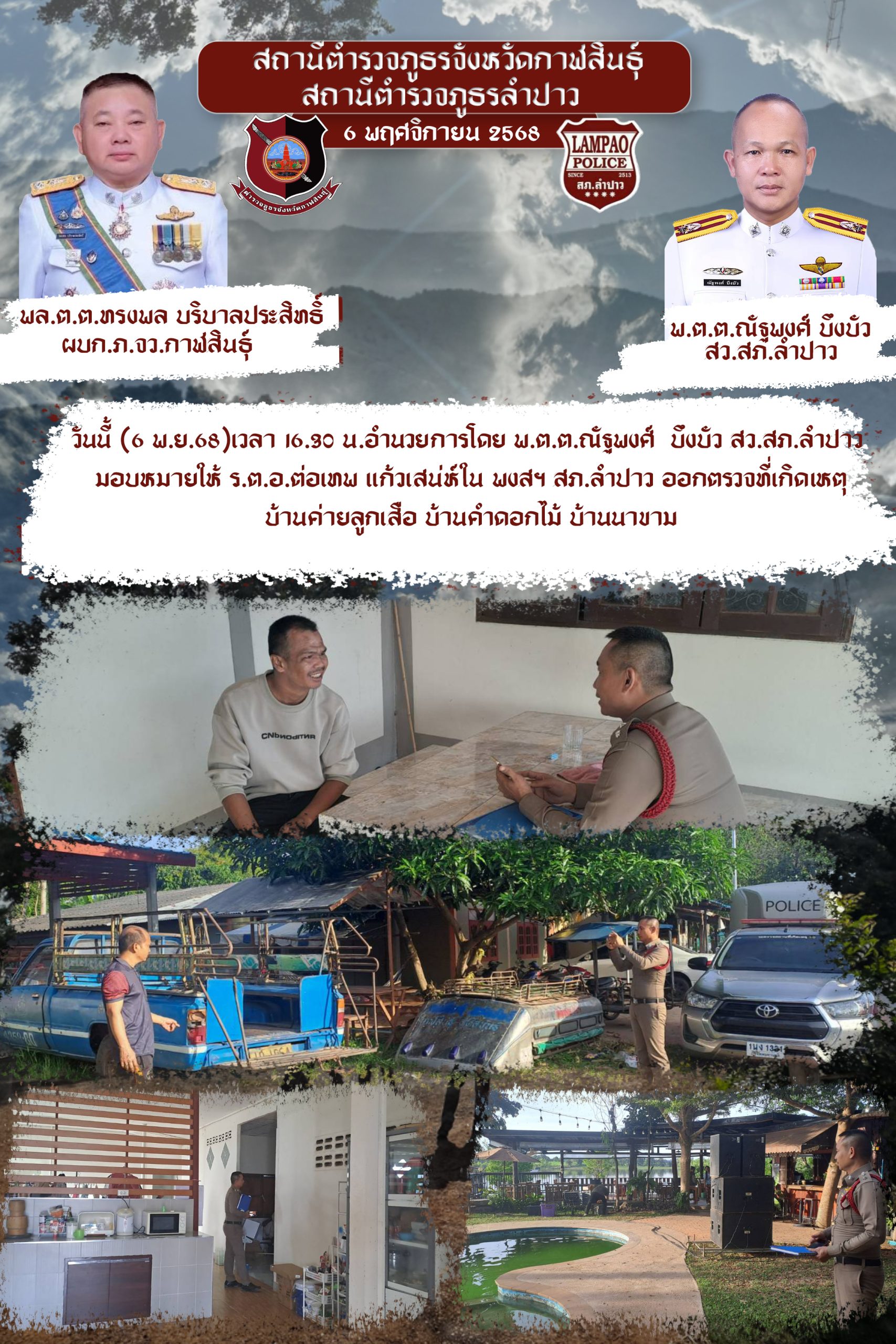 วันนี้ (6 พ.ย. 2568 เวลา 16.30 น.) อำนวยการโดย พ.ต.ต.ณัฐพงศ์ บึงบัว สว.สภ.ลำปาว มอบหมายให้ ร.ต.อ.ต่อ