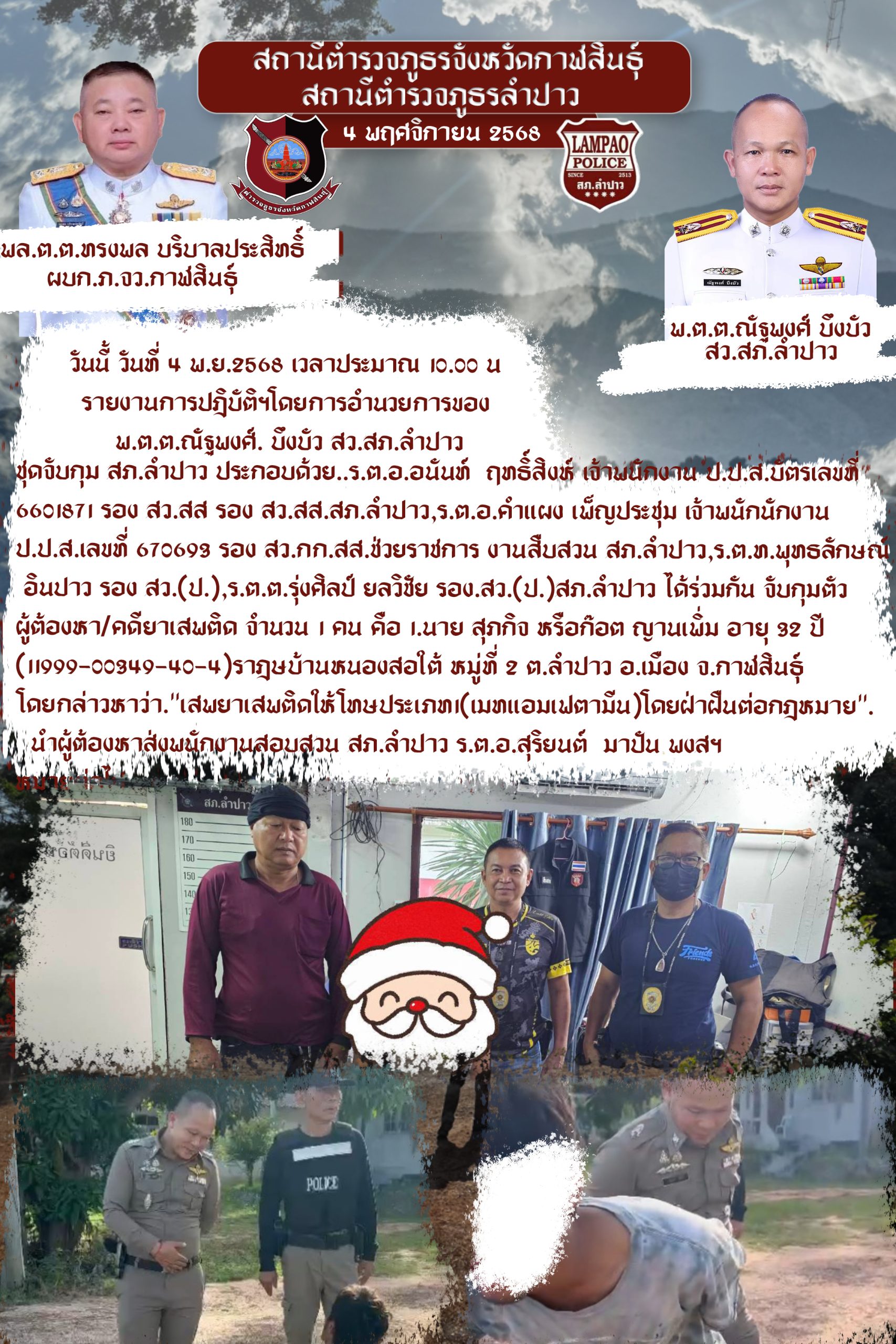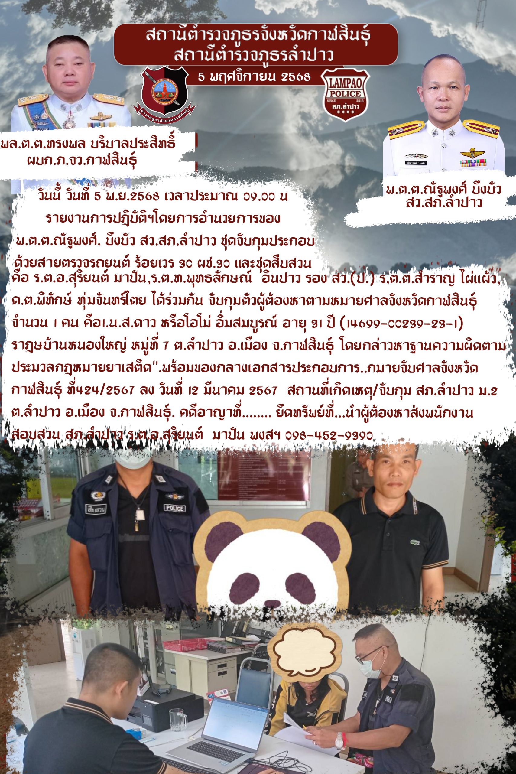 เรียน ผู้บังคับบัญชา วันนี้..วันที่ 29 ต.ค.2568 เวลา 05.30 น สภ.ลำปาว นำโดย พ.ต.ต.ณัฐพงศ์ บึงบัว สว.