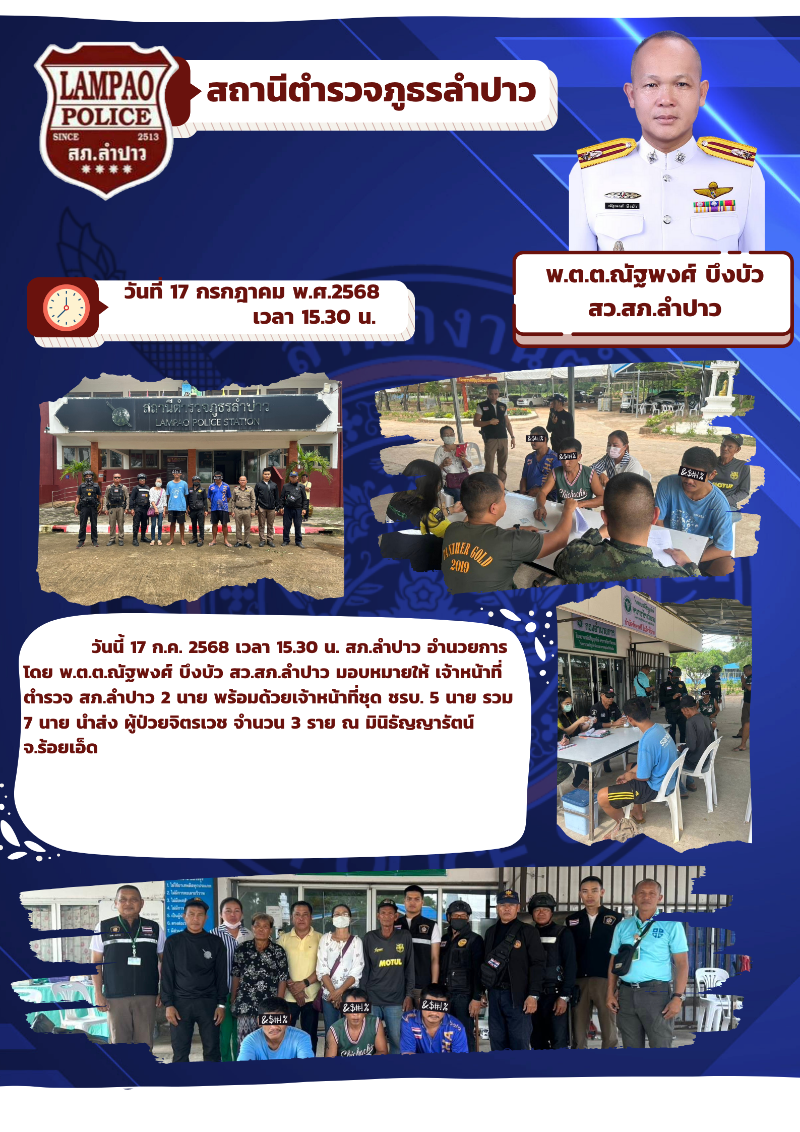 วันนี้ 17 ก.ค. 2568 เวลา 15.30 น. สภ.ลำปาว อำนวยการโดย พ.ต.ต.ณัฐพงศ์ บึง