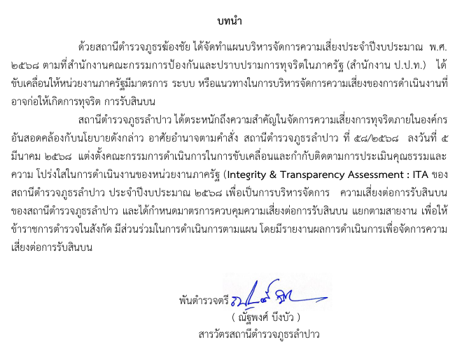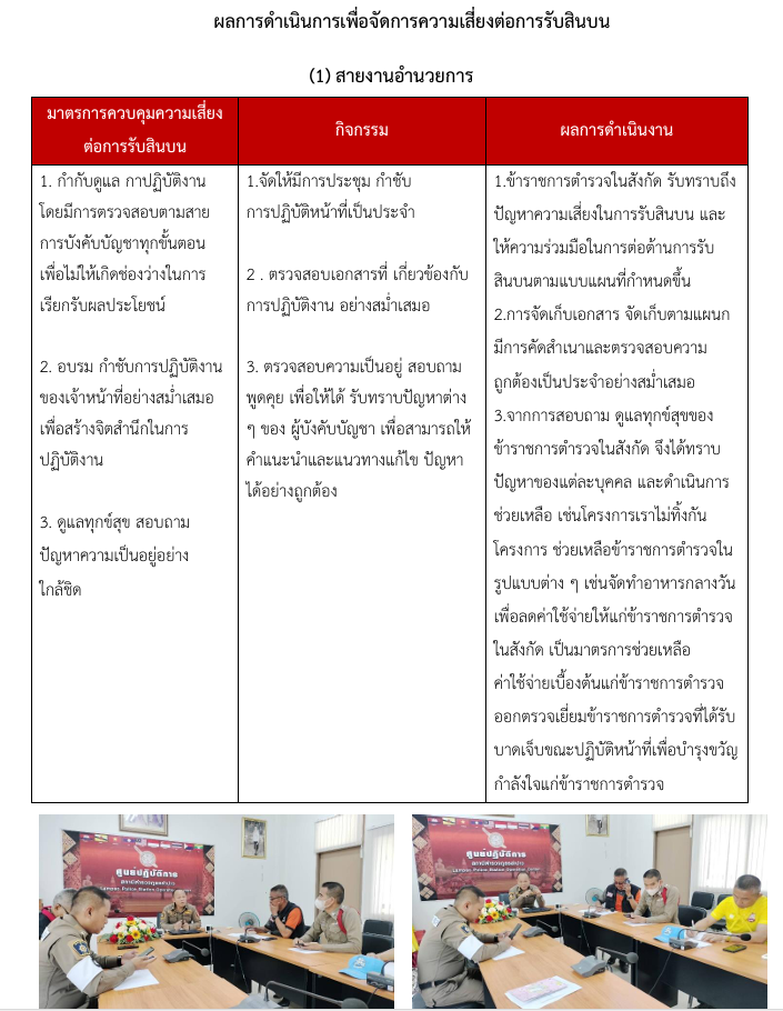 Home » มาตรฐาน ITA » 10.1 การดำเนินการเพื่อป้องกันการทุจริต » O21 การรายงานผลการดำเนินการเพื่อจัดการความเสี่ยงต่อการรับสินบน