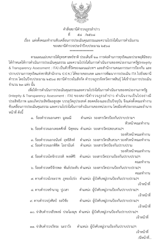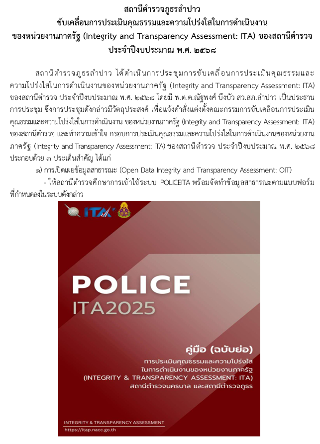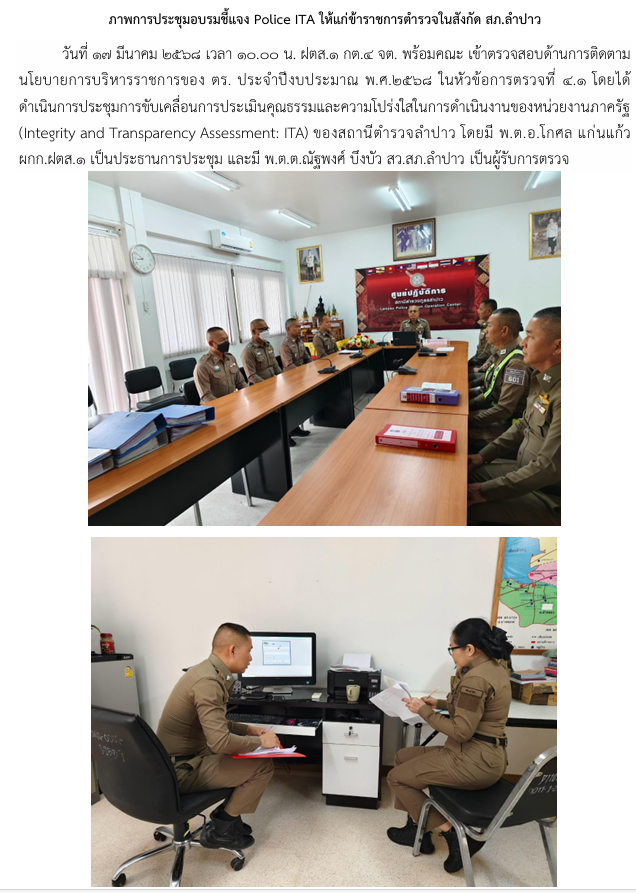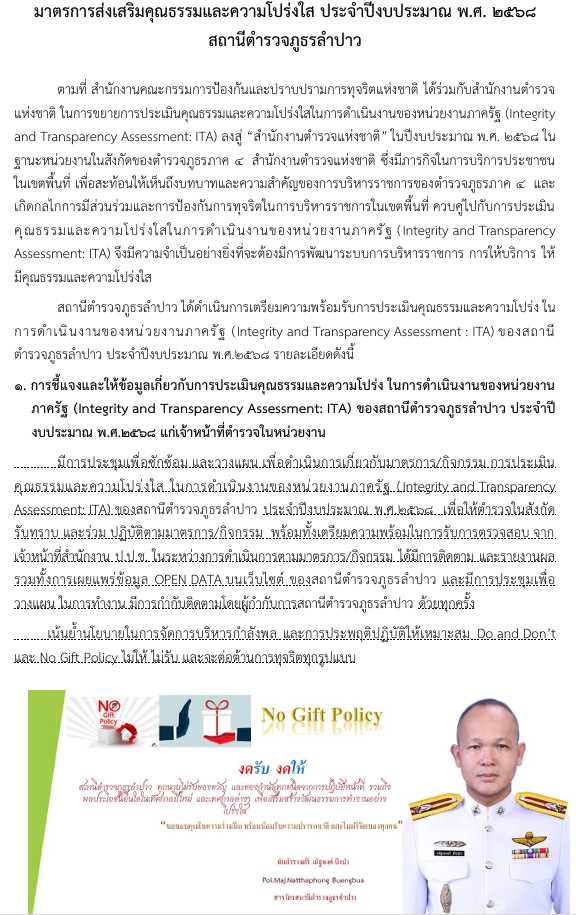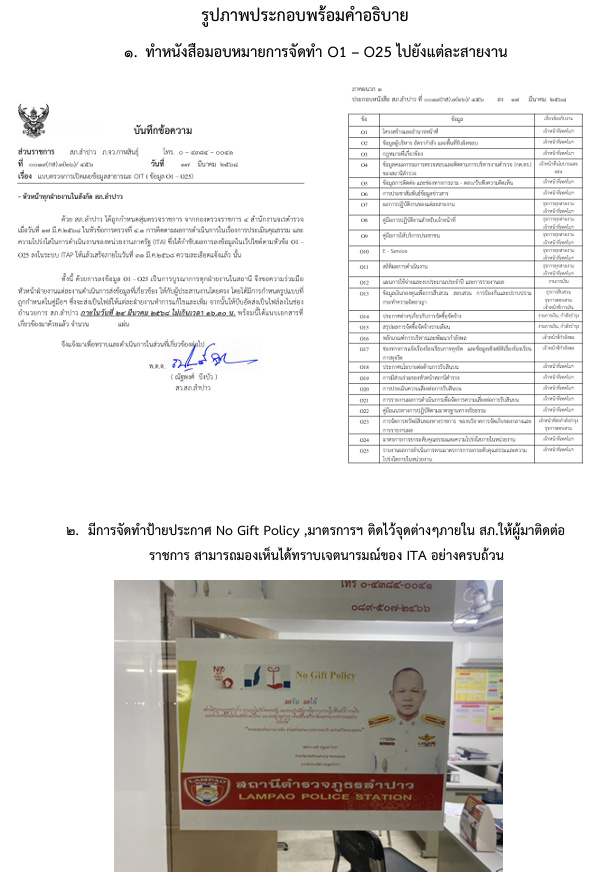 Home » มาตรฐาน ITA » 10.2 มาตรการภายในเพื่อส่งเสริมคุณธรรมและความโปร่งใส » O24 มาตรการการยกระดับคุณธรรมและความโปร่งใสภายในหน่วยงาน