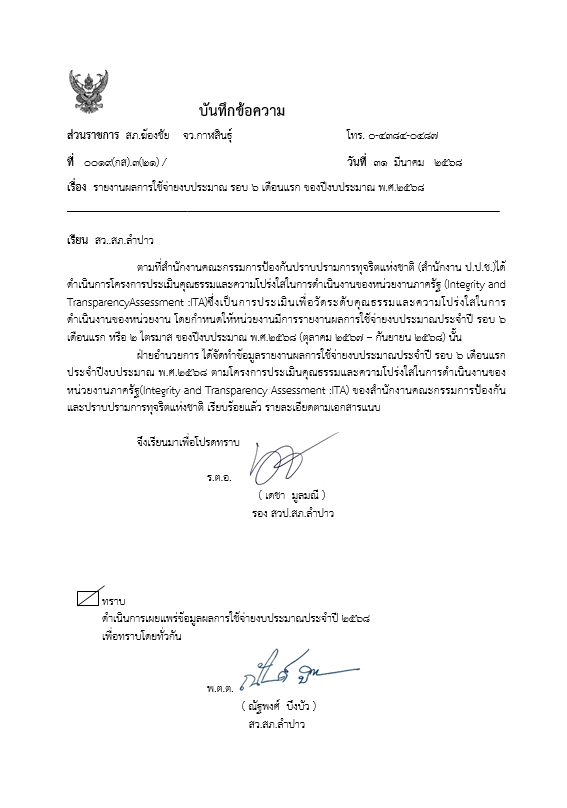 Home » มาตรฐาน ITA » 9.3 การบริหารเงินงบประมาณ » O12 แผนการใช้จ่ายงบประมาณประจำปีและการรายงานผล