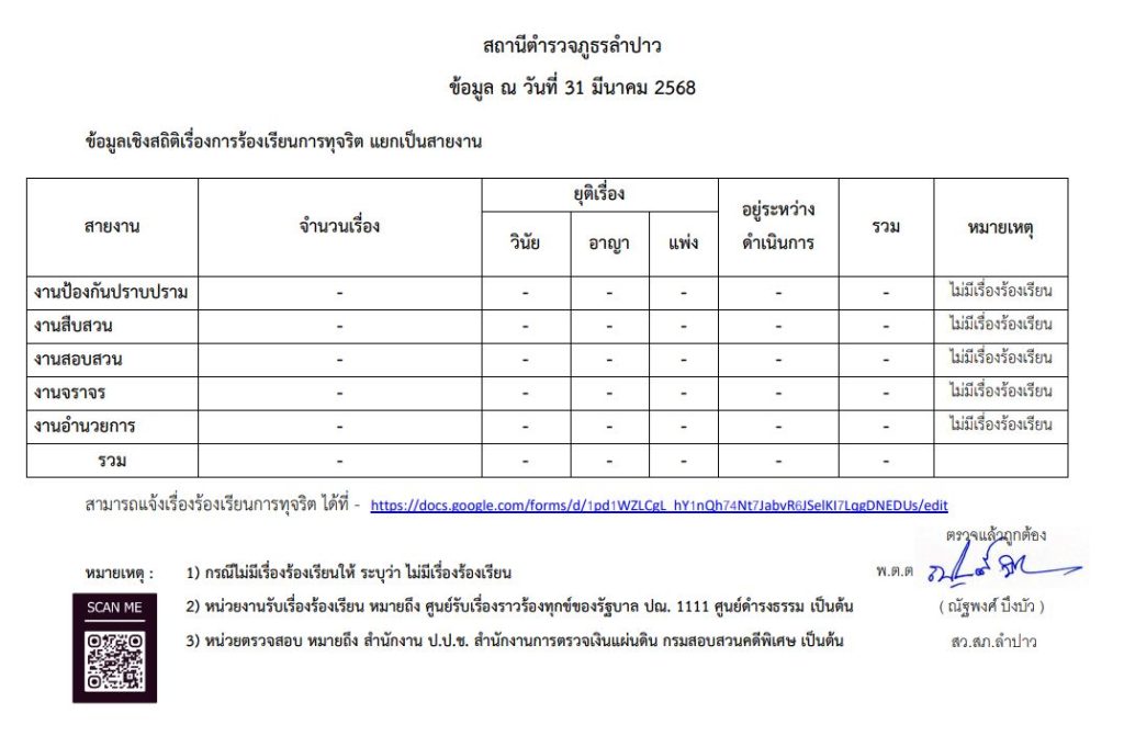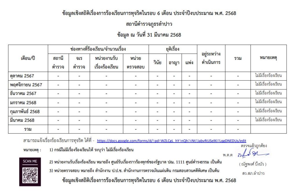 Home » มาตรฐาน ITA » 9.5 การจัดการเรื่องร้องเรียนการทุจริต » O17 ช่องทางการแจ้งเรื่องร้องเรียนการทุจริตและข้อมูลเชิงสถิติเรื่องร้องเรียนการทุจริต